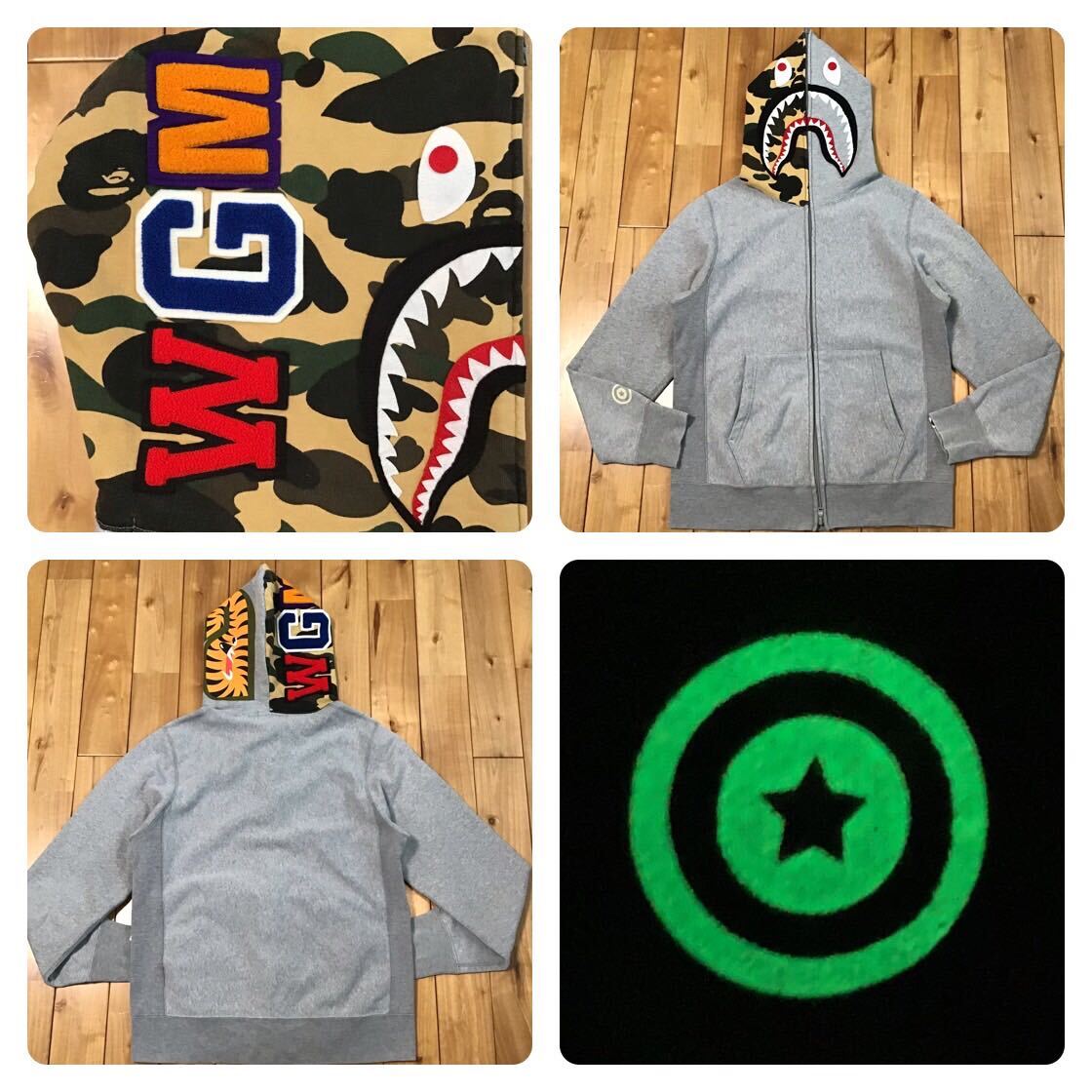 ★蓄光★ シャーク パーカー 1st camo yellow × グレー Mサイズ shark full zip hoodie a...
