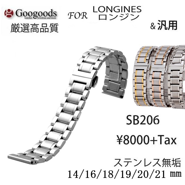 グーグッズ厳選高品質ステンレスベルトSB206取付幅14mm 16mm 18mm 19mm 20mm 21mm For LONGI...