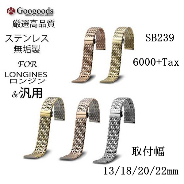 グーグッズ厳選高品質ステンレスベルトSB239取付幅13mm 18mm 20mm 22mm For LONGINESロンジン&汎用