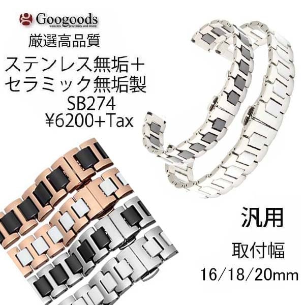 グーグッズ厳選高品質ステンレス+セラミックベルトSB274取付幅16mm 18mm 20mm 汎用