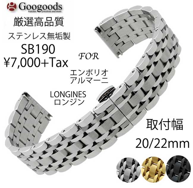 グーグッズ厳選高品質ステンレスベルトSB190取付幅20mm 22mm Forアルマーニ ロンジン&汎用