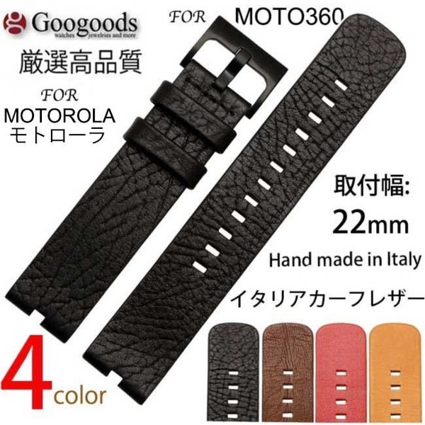 幅22mm 時計バンド イタリア高級カーフレザーベルトLB090 For MOTOROLAモトローラMOTO360