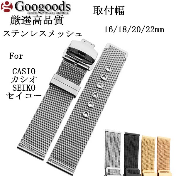 幅16mm 18mm 20mm 22メッシュメタル 腕時計バンドMSB116 For CASIOカシオSEIKOセイコー