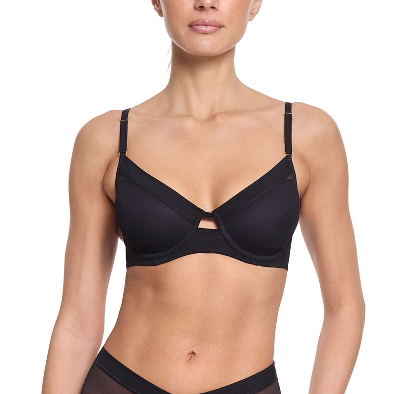 アンラインド メッシュ アンダーワイヤー ブラ (ブラック)