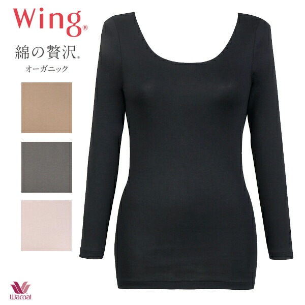 ワコール/ウイング 綿の贅沢オーガニックコットン混 トップ EL4830 ML [8分袖・Uネック]