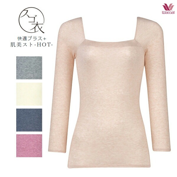ワコール スゴ衣 SUGOI 快適プラス+ 肌美スト Hot トップ CLD318 ML [9分袖・スタンダードスクエアネック]