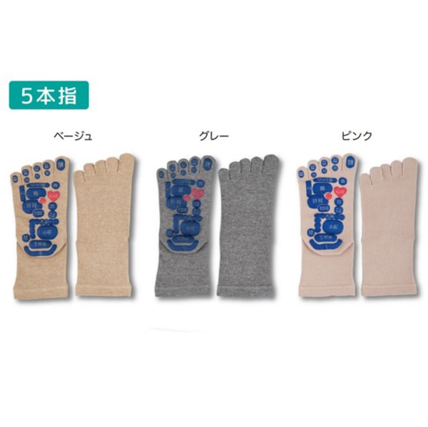 【日本製】TSUBOレシピ つぼマップソックス 22-25cm 5本指 ベージュ グレー ピンク 足 フット つぼ ツボ 健康靴下...