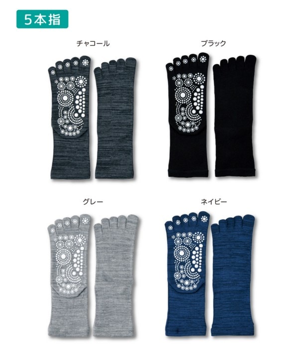 【日本製】TSUBOレシピ 足つぼ 25-27cm 5本指 チャコール ブラック グレー ネイビー 足 フット つぼ ツボ 口ゴム...