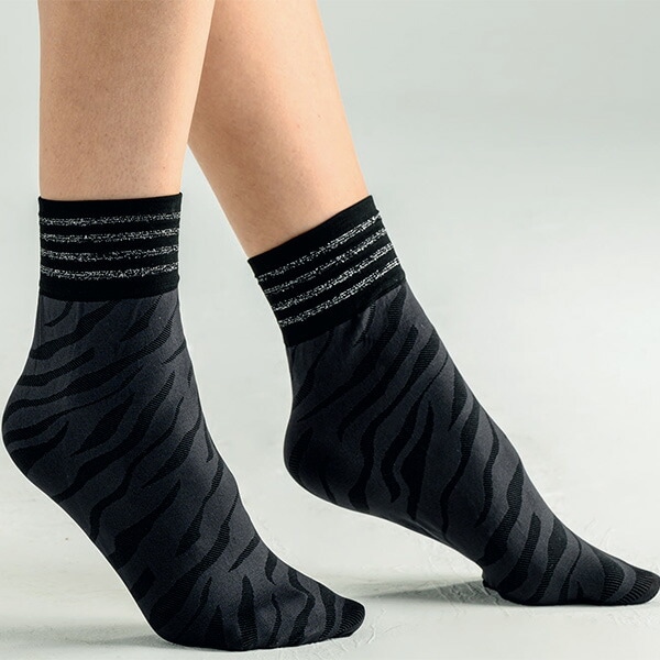 イタリアインポート柄ソックス DONNA BC 1935 アニマル柄ソックス 黒