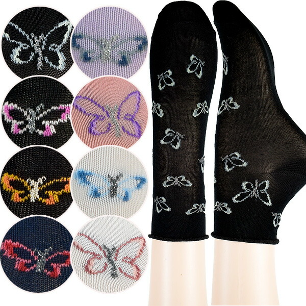 イタリア インポート ブランド 柄ソックス ENRICO COVERI EASY 蝶々柄ラメコットンソックス 8色