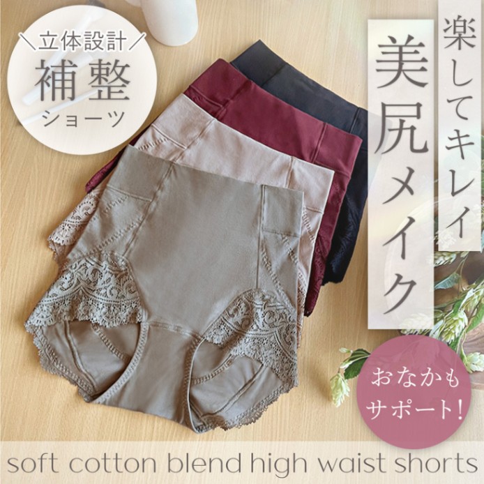 カヤビューティラボ やわらか綿混ハイウエストショーツ24