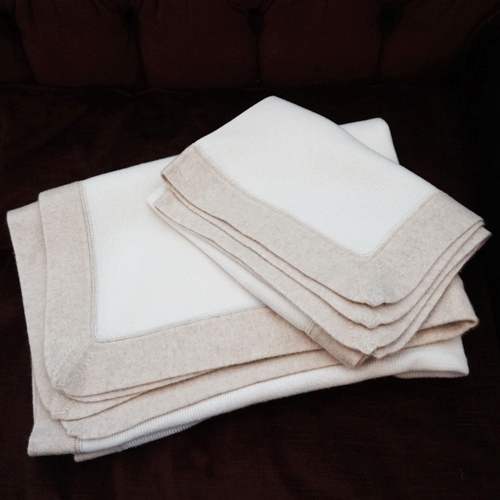 最高級無染色カシミヤ100%のブランケット【リブ編み約80cm x 約56cm(縁5cm)】