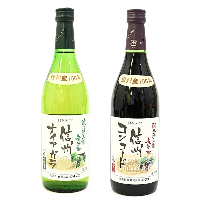 信州産100% アルプスワイン(赤と白/各1本)720ml(わいん)(送料込)
