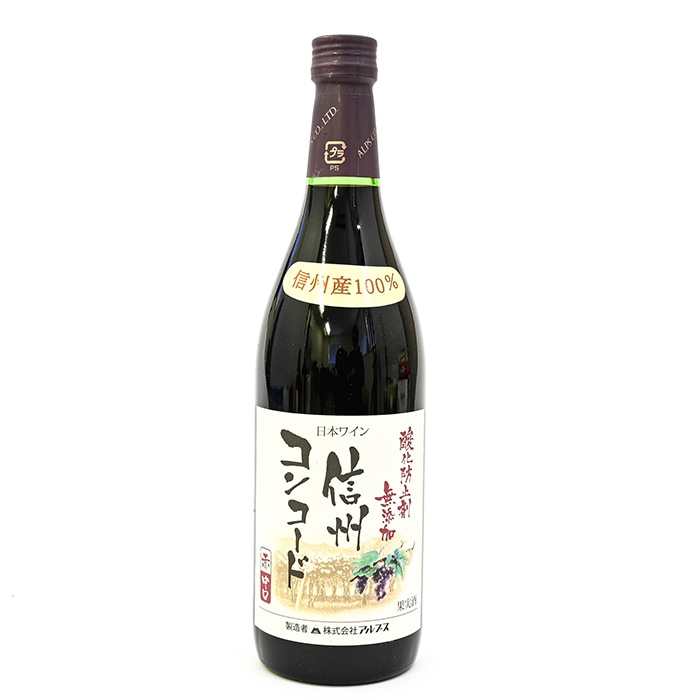 信州産100% アルプスワイン(赤)信州コンコード 酸化防止剤無添加 720ml(わいん)