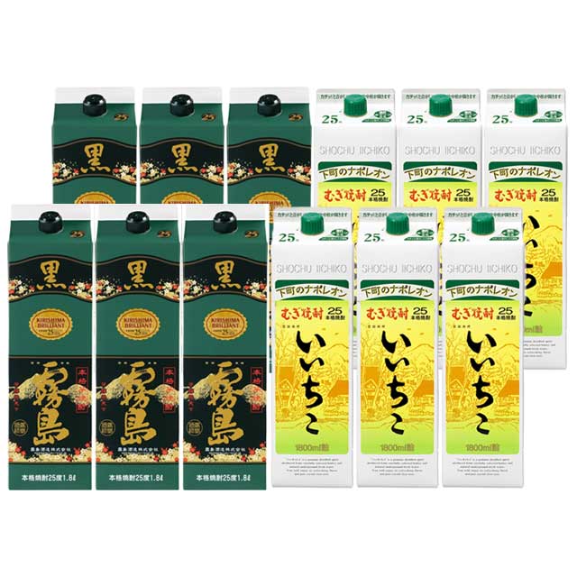 【送料無料】人気芋焼酎パックセット(黒霧島・黒伊佐錦・島美人・薩摩一・黒まろ・白まろ)25度 1800ml×各2本 計12本