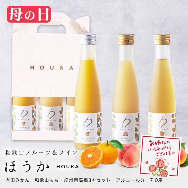 \300円OFFクーポン配布中/ 母の日 ギフト 和歌山フルーツワイン3本セット(みかん、桃、南高梅)各180ml 箱入芳醇なフル...