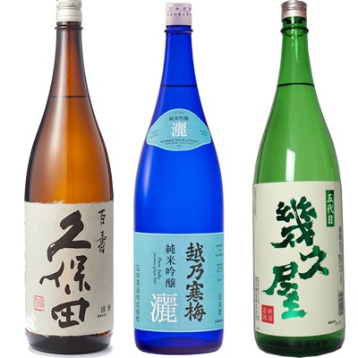 久保田 百寿 特別本醸 1800ml と 越乃寒梅 灑 純米吟醸 1800mlと五代目 幾久屋 1800ml