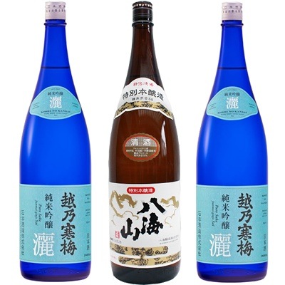 越乃寒梅 灑 純米吟醸 1.8Lと八海山 特別本醸造 1.8L と 越乃寒梅 灑 純米吟醸 1.8L