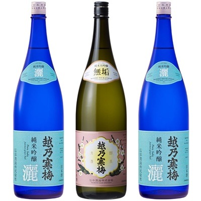 越乃寒梅 灑 純米吟醸 1.8Lと越乃寒梅 無垢 純米大吟醸 1.8L と 越乃寒梅 灑 純米吟醸 1.8L