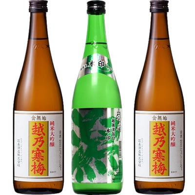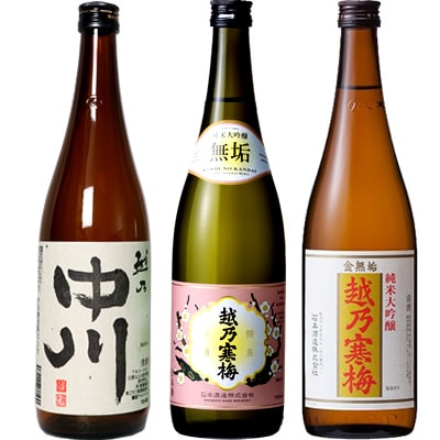 越乃中川 720ml と 越乃寒梅 無垢 純米大吟醸 720mlと越乃寒梅 金無垢 純米大吟醸 720ml
