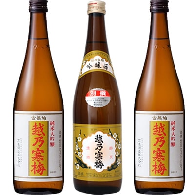 越乃寒梅 別撰 吟醸 720ml と 越乃寒梅 金無垢 純米大吟醸 720mlと越乃寒梅 金無垢 純米大吟醸 720ml