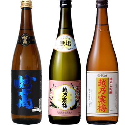 妙高 旨口四段 720ml と 越乃寒梅 無垢 純米大吟醸 720mlと越乃寒梅 金無垢 純米大吟醸 720ml