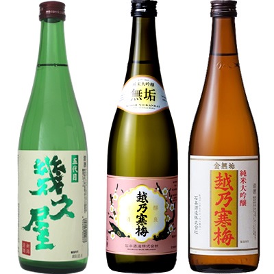 五代目 幾久屋 720ml と 越乃寒梅 無垢 純米大吟醸 720mlと越乃寒梅 金無垢 純米大吟醸 720ml