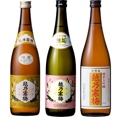 越乃寒梅 白ラベル 720ml と 越乃寒梅 無垢 純米大吟醸 720mlと越乃寒梅 金無垢 純米大吟醸 720ml