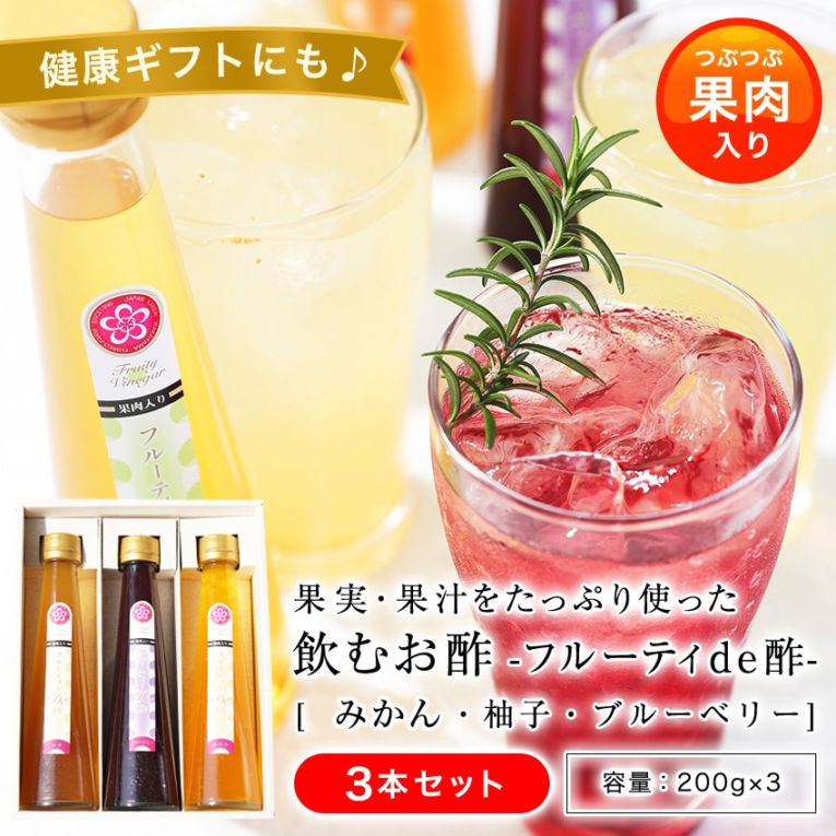健康飲料 飲むお酢 フルーティde酢 3本セットみかん、柚子、ブルーベリー送料無料※北海道、沖縄除く mom sum kr