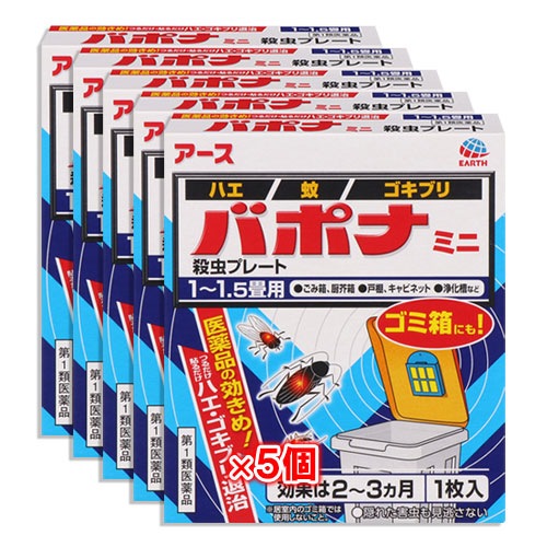 【第1類医薬品】バポナミニ殺虫プレート 1枚×5個セット【アース製薬】医薬品の効きめ!つるだけ貼るだけハエ・蚊・ゴキブリ退治 1~...