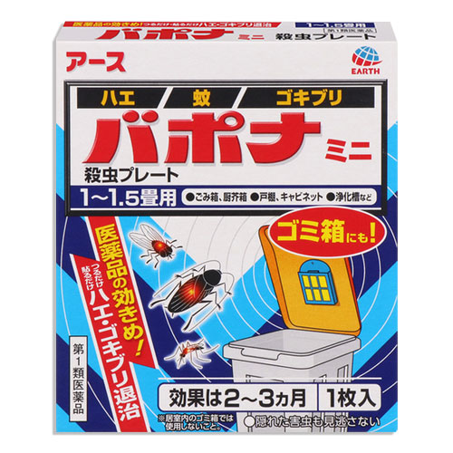 【第1類医薬品】バポナミニ殺虫プレート 1枚【アース製薬】医薬品の効きめ!つるだけ貼るだけハエ・蚊・ゴキブリ退治 1~1.5畳用