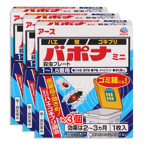 【第1類医薬品】バポナミニ殺虫プレート 1枚×3個セット【アース製薬】医薬品の効きめ!つるだけ貼るだけハエ・蚊・ゴキブリ退治 1~...