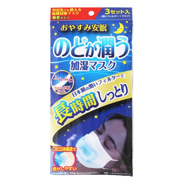 のどが潤う加湿マスク 3セット分(1袋)【奥田薬品】おやすみ安眠 無香タイプ ふつうサイズ 日本製の潤いフィルターで長時間しっとり...