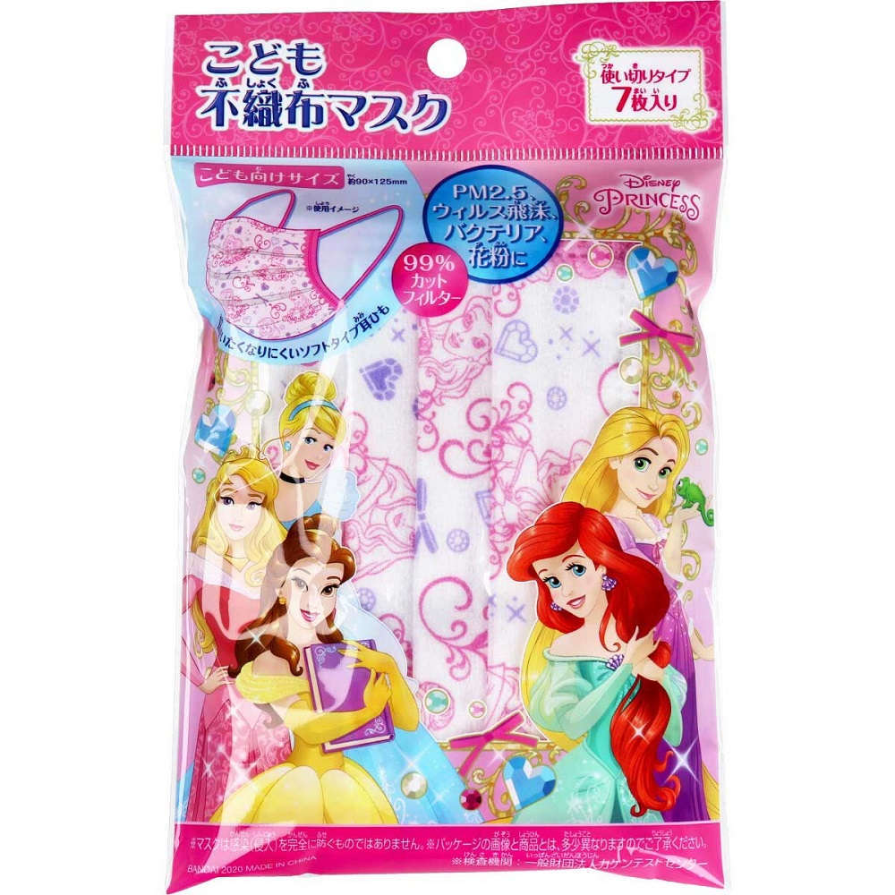 【不織布マスク】【キッズ】 こども不織布マスク ディズニープリンセス 使い切りタイプ 7枚入