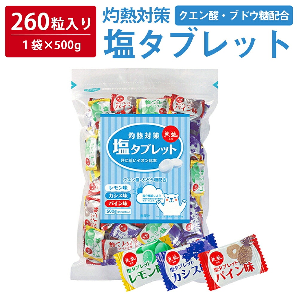 【 熱中症対策 】 \たっぷり220粒入/ 塩タブレット 500g ( 500g×1袋 ) 塩分補給 3種のフレーバー レモン カ...