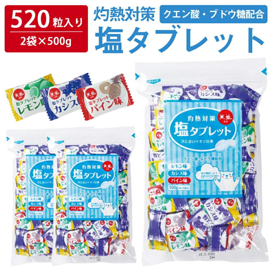 【 熱中症対策 】 \たっぷり440粒入/ 塩タブレット 500g ( 500g×2袋 ) 塩分補給 3種のフレーバー レモン カ...