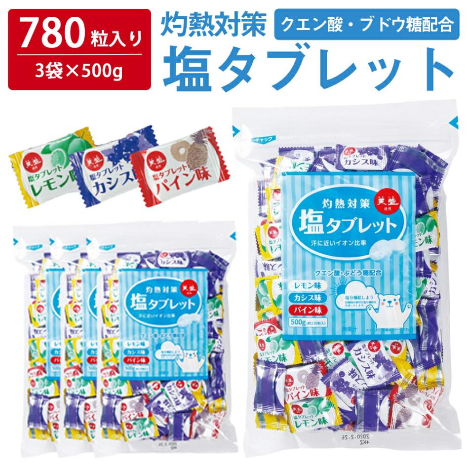 【 熱中症対策 】 \たっぷり660粒入/ 塩タブレット 500g ( 500g×3袋 ) 塩分補給 3種のフレーバー レモン カ...
