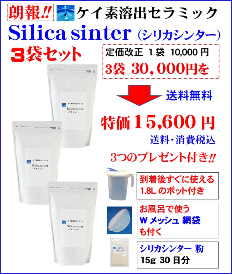 03:シリカシンター(ケイ素溶出焼石) 《3袋セット》 定価30,000円が⇒15,600円 更に、必須アイテムのポット、風呂用網...