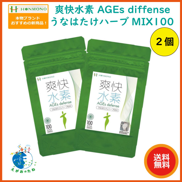 爽快水素 AGEs diffense うなはたけハーブMIX100(340mg x 100カプセル) 2個セット 株式会社 本...