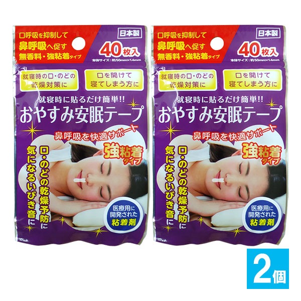 おやすみ安眠テープ 強粘着タイプ 40枚入×2個セット【奥田薬品】就寝時に貼るだけ簡単!!鼻呼吸を快適サポート 鼻呼吸テープ いび...