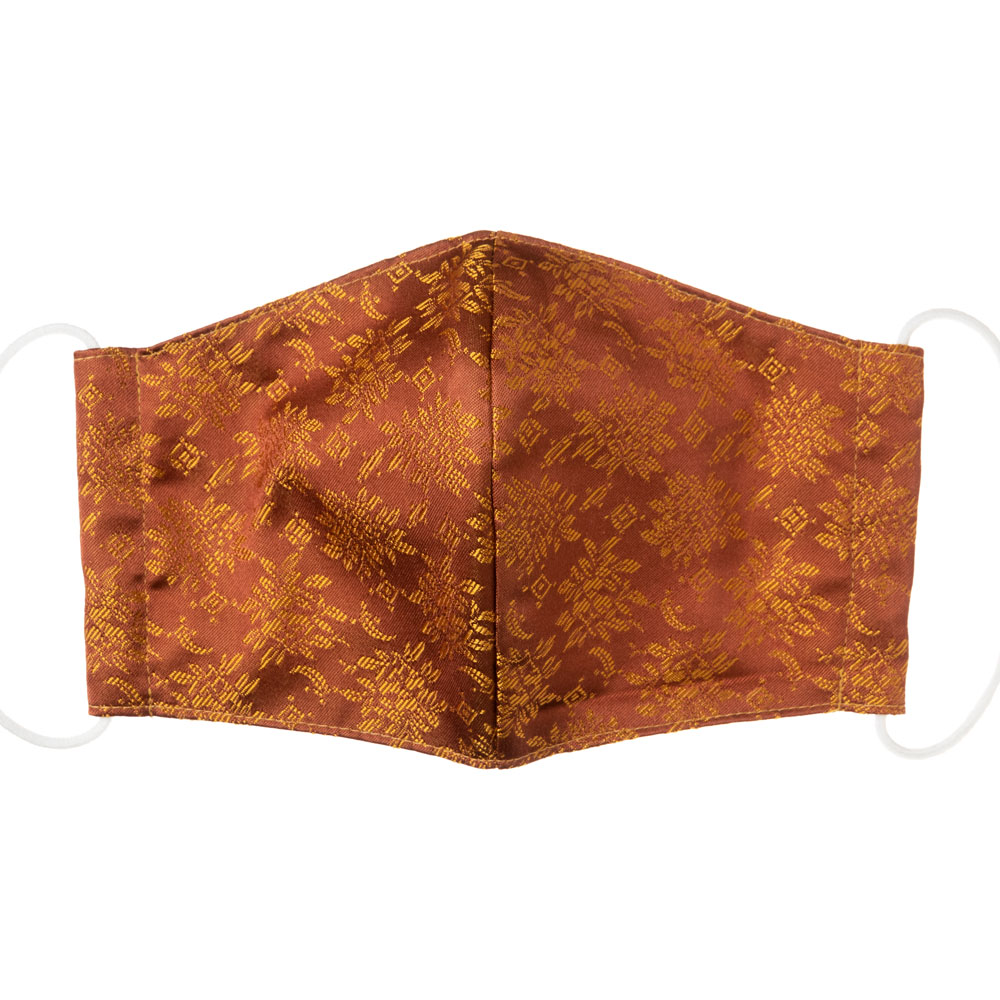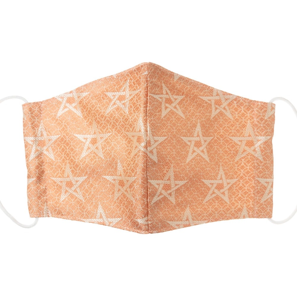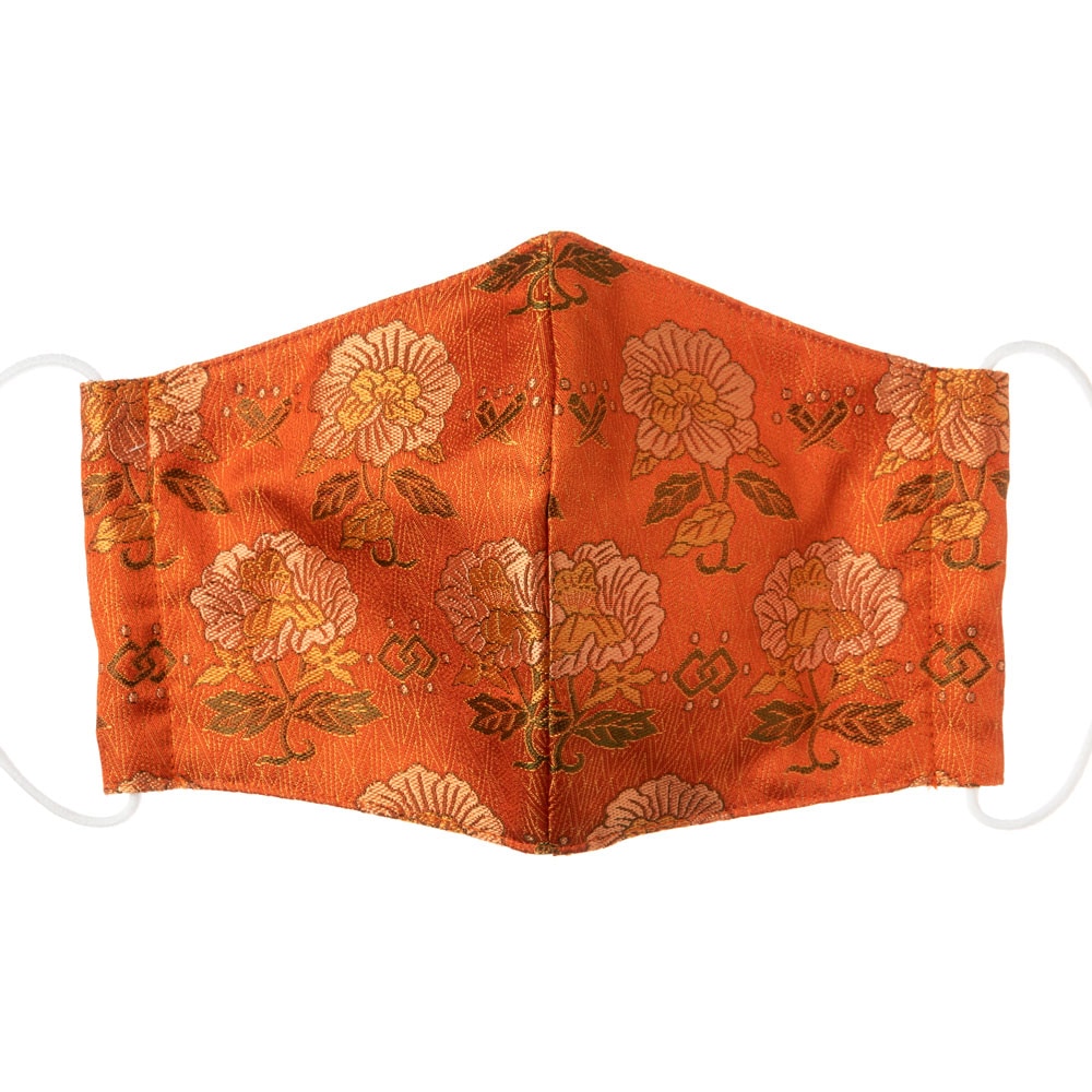 京都 あらいそ 西陣織名物裂 和装マスク009 五芒星七宝文様 橙 正絹織物とガーゼを組み合わせた和風スタイルマスク 男女兼用 K...