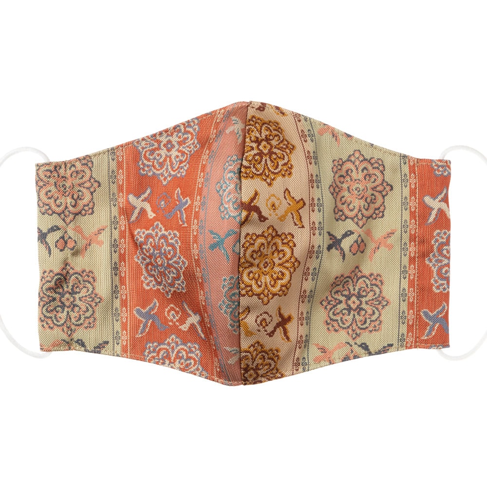 京都 あらいそ 西陣織名物裂 和装マスク052 鶏頭紋 正絹織物とガーゼを組み合わせた和風スタイルマスク 男女兼用 Kyoto n...