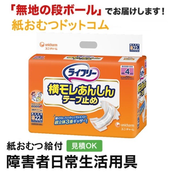 ライフリー 横モレあんしんテープ止め Sサイズ 22枚入 紙おむつテープ止めタイプ