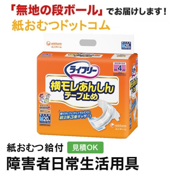 ライフリー 横モレあんしんテープ止め Mサイズ 20枚入 紙おむつテープ止めタイプ