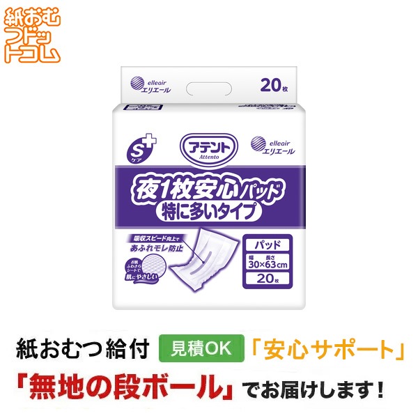 アテント Sケア夜1枚安心パッド 特に多いタイプ 20枚入 大人用紙おむつ 尿取りパッド