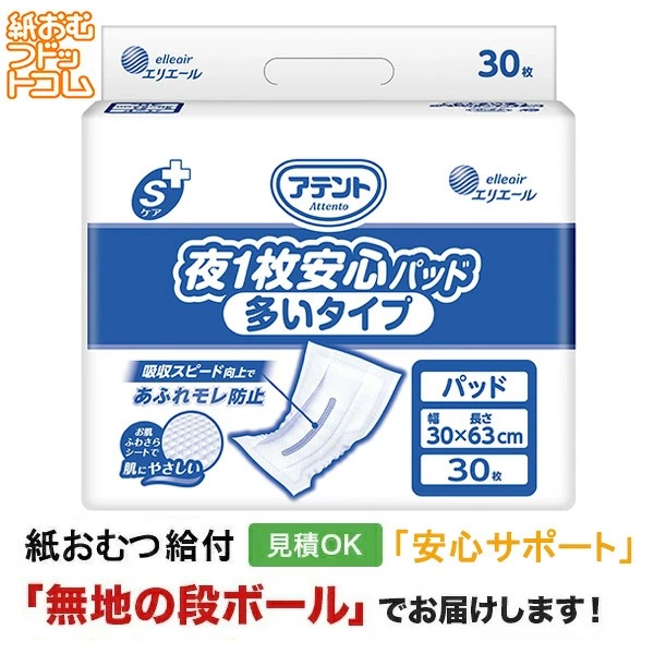 アテント Sケア夜1枚安心パッド 多いタイプ 30枚入 大人用紙おむつ 尿取りパッド