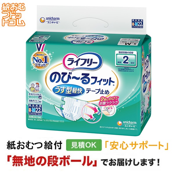 ライフリー のびーるフィットうす型軽快テープ止め SMサイズ 22枚入 大人用紙おむつ テープ止めタイプ