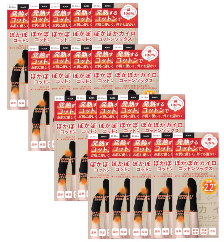 ぽかぽかカイロコットンソックス CO02 BLACK <23~25cm>×20【20個セット】送料無料 靴下 くつした 足先 冷...