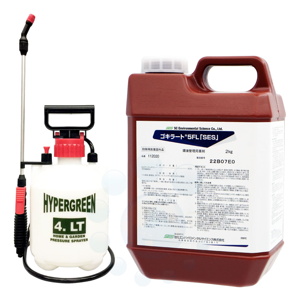 ゴキブリ駆除 殺虫剤 ゴキラート5FL 「SES」2kg + 蓄圧式噴霧器 4L セット 【防除用医薬部外品】 殺虫剤 チャバネゴ...