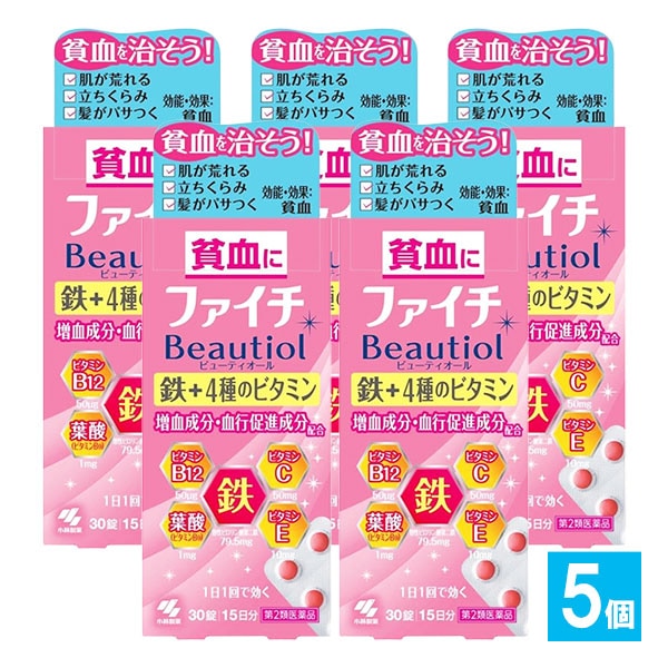 【第2類医薬品】ファイチ Beautiol(ビューティオール) 30錠×5個セット【小林製薬】貧血改善薬 貧血を治そう!鉄+4種の...